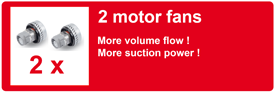 Используется тангенциальный принцип прохождения воздуха, когда всасываемый мусор движется внутри бака по спирали, осаждая крупный мусор, что предохраняет фильтр и продляет его срок службы, обеспечивает равномерное заполнение бака и неизменно высокую силу всасывания.